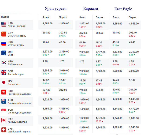 Өнөөдрийн байдлаар валютын ханш Монголбанк, арилжааны банкууд болон валютын захууд дээр ямар байгааг хүргэе...