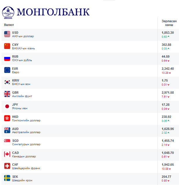 Өнөөдрийн байдлаар валютын ханш Монголбанк, арилжааны банкууд болон валютын захууд дээр ямар байгааг хүргэе...