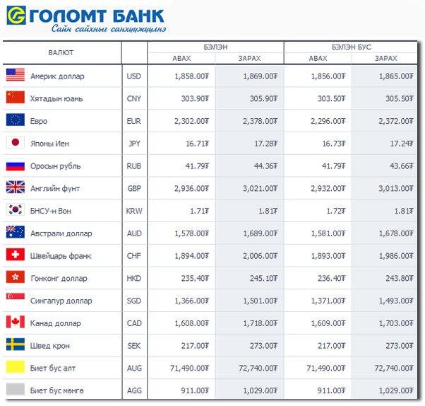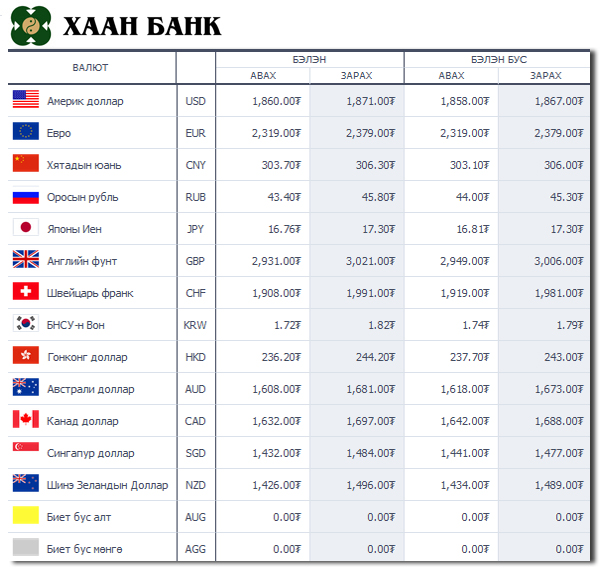 | Өнөөдрийн валютын ханш /2014.10.31/ | ||