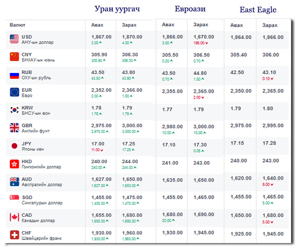 Өнөөдрийн байдлаар валютын ханш Монголбанк, арилжааны банкууд болон валютын захууд дээр ямар байгааг хүргэе...