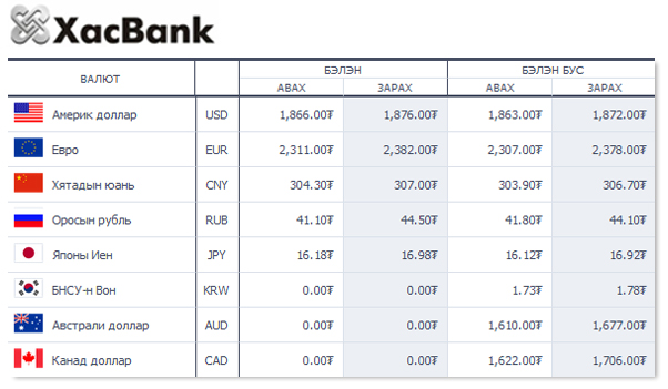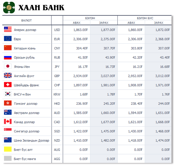 | Өнөөдрийн валютын ханш /2014.11.04/ | ||