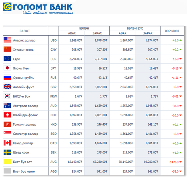| Өнөөдрийн валютын ханш /2014.11.06/ | ||