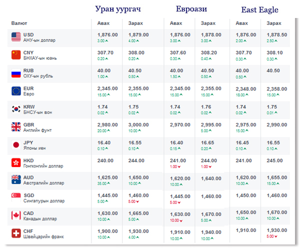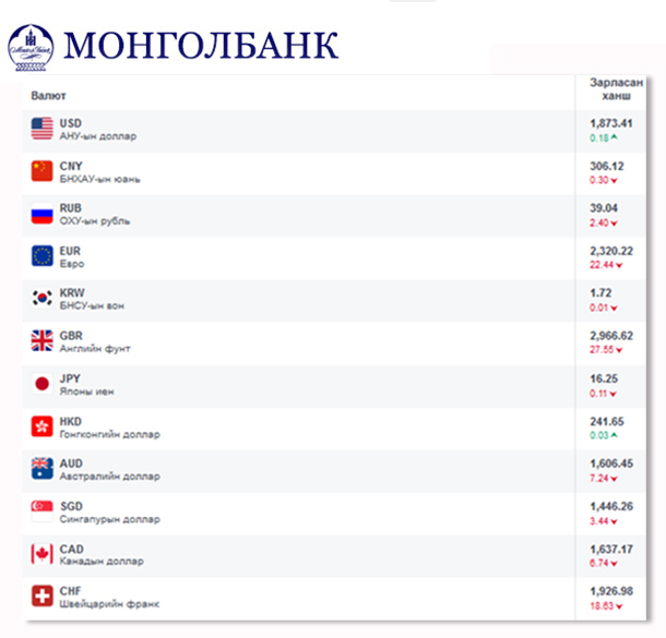 Өнөөдрийн байдлаар валютын ханш Монголбанк, арилжааны банкууд болон валютын захууд дээр ямар байгааг хүргэе.