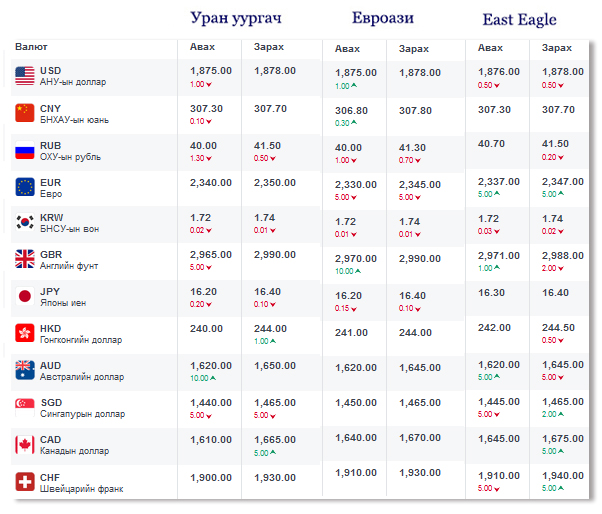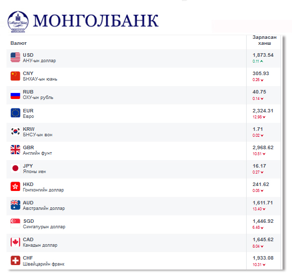 Өнөөдрийн байдлаар валютын ханш Монголбанк, арилжааны банкууд болон валютын захууд дээр ямар байгааг хүргэе.