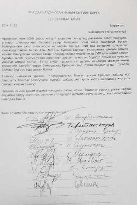 Уг шаардлагад УИХ-ын гишүүн Р.Амаржаргалыг намаасаа урваж Н.Алтанхуягийг огцруулахад оролцсон тул дэмжихгүй гэжээ.