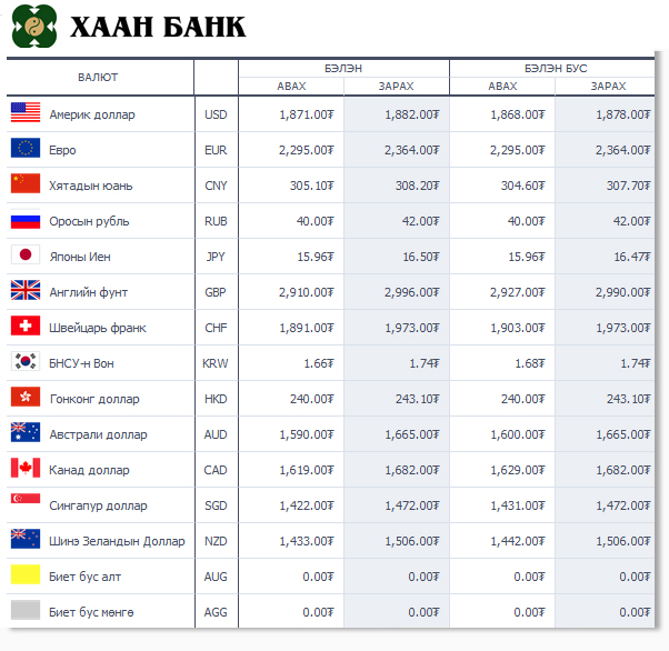 Өнөөдрийн байдлаар валютын ханш Монголбанк, арилжааны банкууд болон валютын захууд дээр ямар байгааг хүргэе.
