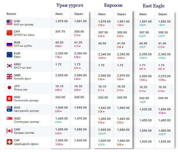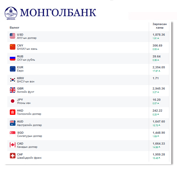 Өнөөдрийн байдлаар валютын ханш Монголбанк, арилжааны банкууд болон валютын захууд дээр ямар байгааг хүргэе.
