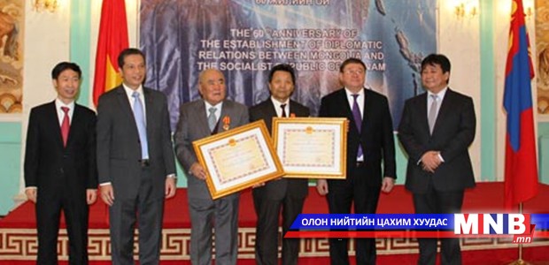 Монгол Улс, БНСВУ-ын хооронд дипломат харилцаа тогтоосны 60 жилийн ойг тохиолдуулан хоёр орны харилцаанд үнэтэй хувь нэмэр оруулсан Монгол Улсаас БНСВУ-д суугаа Элчин сайд Д.Энхбат, Монгол, Вьетнамын Найрамдлын Нийгэмлэгийн тэргүүн, доктор С.Дашцэвэл, Ахмад дайчин Д.Алмаас нарыг БНСВУ-ын “Найрамдал” медалиар, Вьетнам, Монголын Найрамдлын нийгэмлэгийн дарга асан Хоанг Минь Тханг, Монгол Улсаас БНСВУ-д суугаа ЭСЯ-ны хэлмэрч, вьетнамын ахмад дипломатч Ле Динь То нарыг Монгол Улсын “Алтан гадас” одонгоор, БНСВУ-аас Монгол Улсад суугаа Элчин сайд асан Чан Нгуен Чык-ийг Монгол Улсын “Найрамдал” медалиар тус тус шагнав.