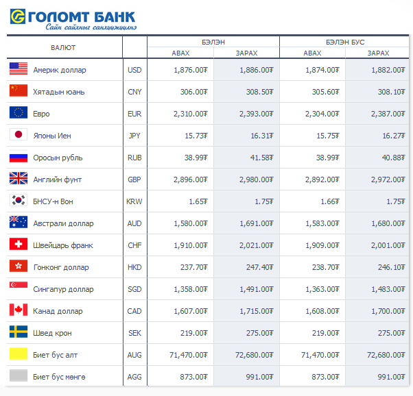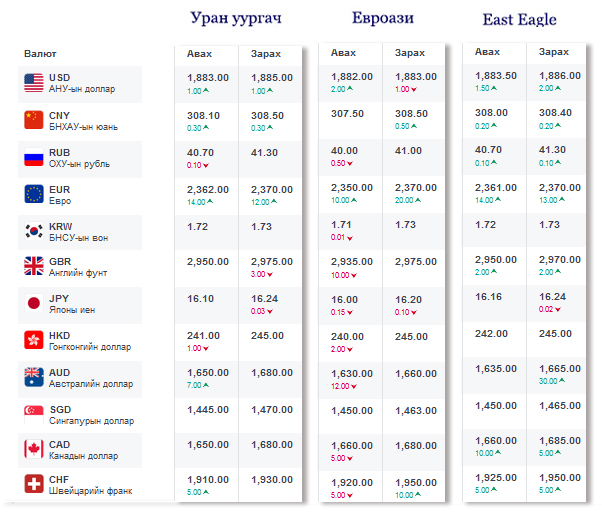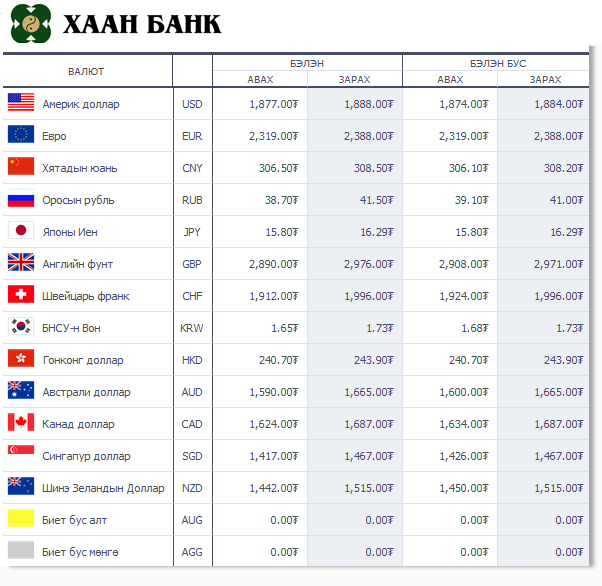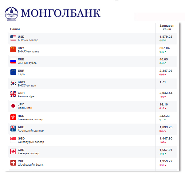 Өнөөдрийн байдлаар валютын ханш Монголбанк, арилжааны банкууд болон валютын захууд дээр ямар байгааг хүргэе.