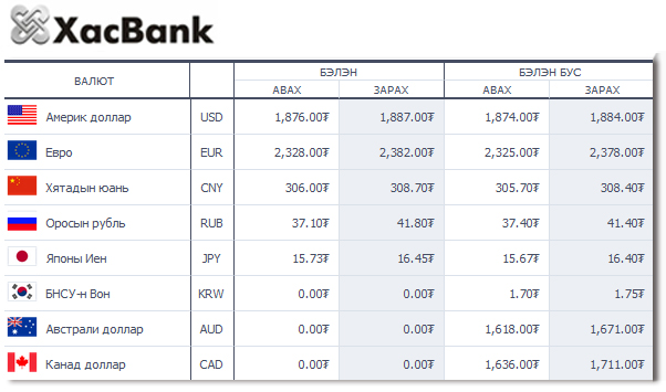 | Өнөөдрийн валютын ханш /2014.11.19/ | ||