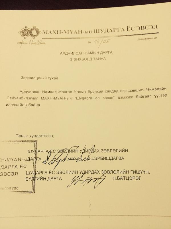 | Эвслийн бүлэг Ч.Сайханбилэгийг дэмжжээ | ||