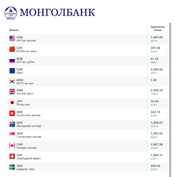 Өнөөдрийн байдлаар валютын ханш Монголбанк, арилжааны банкууд болон валютын захууд дээр ямар байгааг хүргэе.