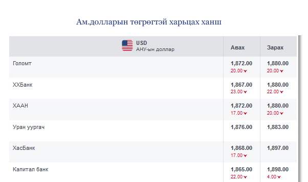 Энэ жилийн хувьд дээрх шалтгаанаар өнгөрсөн долоо хоногийн сүүлээр 1903 төгрөгт хүрээд байсан ам.долларын ханш өнөөдрийн байдлаар 20-25 орчим төгрөгөөр буураад байна. 10 цагийн байдлаар голлох арилжааны банкуудын ам.доллар бэлнээр худалдан авах ханш 1867-1870 төгрөг, зарах ханш 1880 төгрөг байгаа бол валют арилжааны цэгүүдээр ам.долларын 1875 төгрөгөөр авч 1880 төгрөгөөр арилжаалж байна.