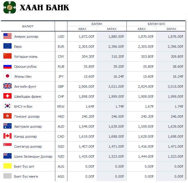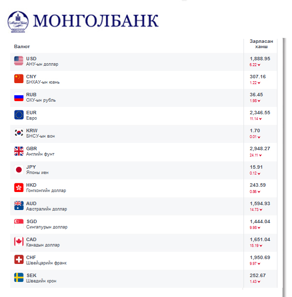Өнөөдрийн байдлаар валютын ханш Монголбанк, арилжааны банкууд болон валютын захууд дээр ямар байгааг хүргэе.