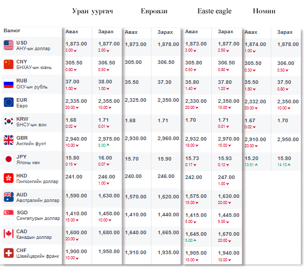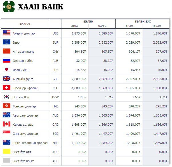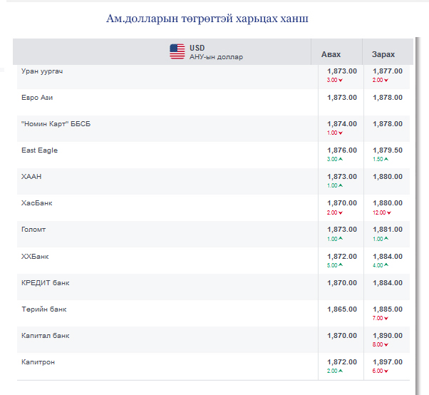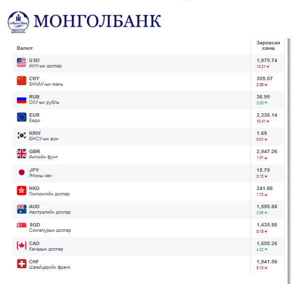 Өнөөдрийн байдлаар валютын ханш Монголбанк, арилжааны банкууд болон валютын захууд дээр ямар байгааг хүргэе.