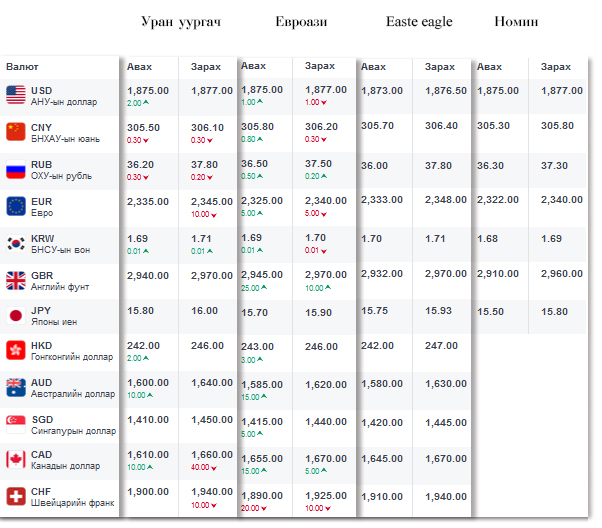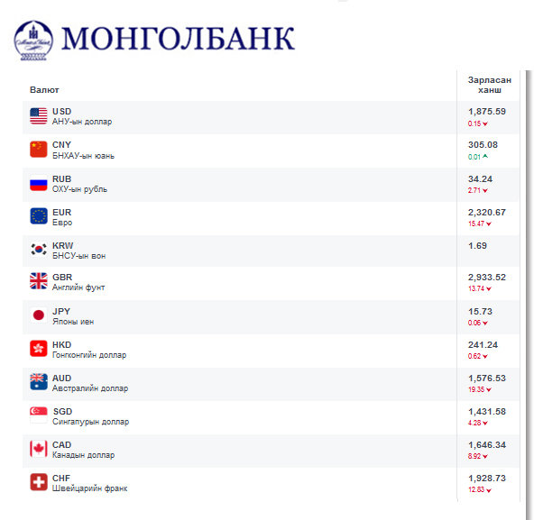 Өнөөдрийн байдлаар валютын ханш Монголбанк, арилжааны банкууд болон валютын захууд дээр ямар байгааг хүргэе.