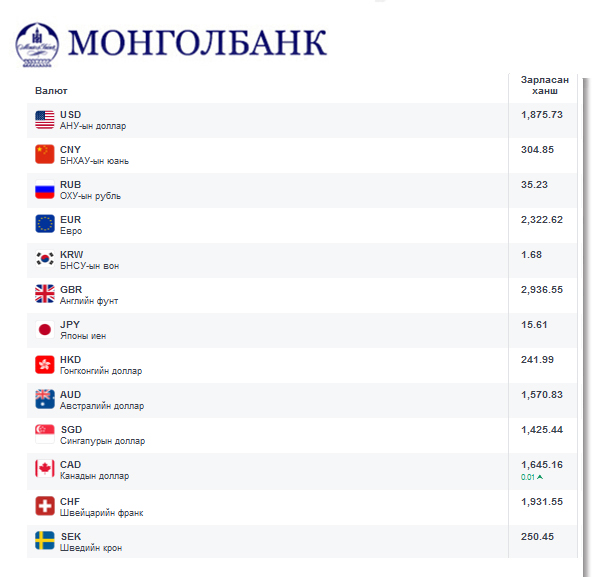 Өнөөдрийн байдлаар валютын ханш Монголбанк, арилжааны банкууд болон валютын захууд дээр ямар байгааг хүргэе.