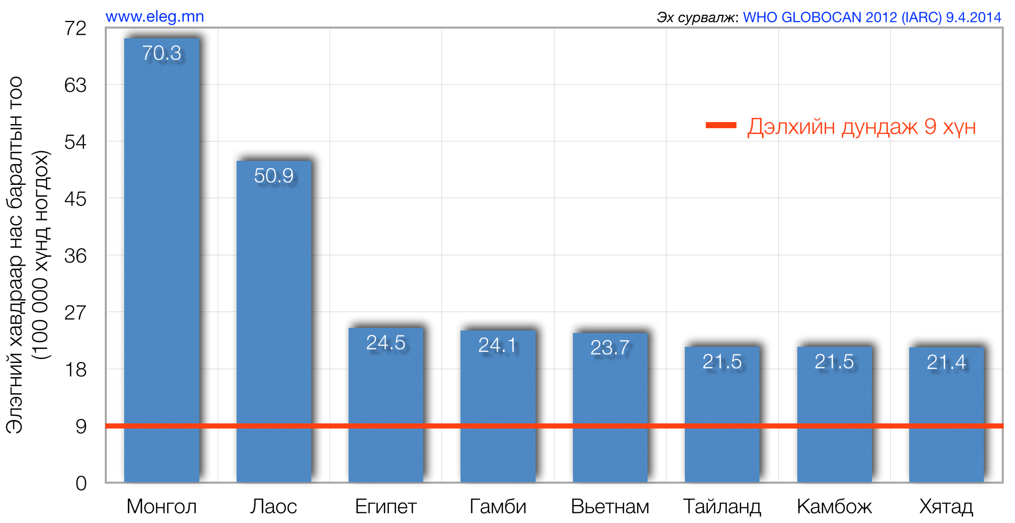 Элэгний эрүүл бус эсүүд өсч үржихийг элэгний хавдар гэнэ. Элэгний хорт хавдар өөр бусад эрхтэнд очиж байрлан үржиж байгааг элэгний үсэрхийлсэн хавдар гэдэг. Манай улс элэгний хорт хавдраар дэлхийд хамгийн өндөр нас баралттай орон юм. Монгол Улсад жил бүр 1800 орчим хүн элэгний хорт хавдартай гэж оношлогддог. Зөвхөн 2012 онд 1619 хүн элэгний хорт хавдраар нас барсан тѳдийгүй энэ тоо жил ирэх тутам нэмэгдэж байна.