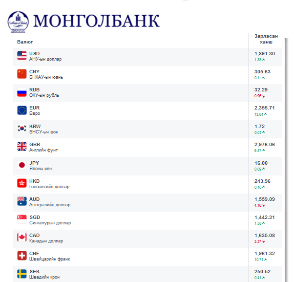 Өнөөдрийн байдлаар валютын ханш Монголбанк, арилжааны банкууд болон валютын захууд дээр ямар байгааг хүргэе.