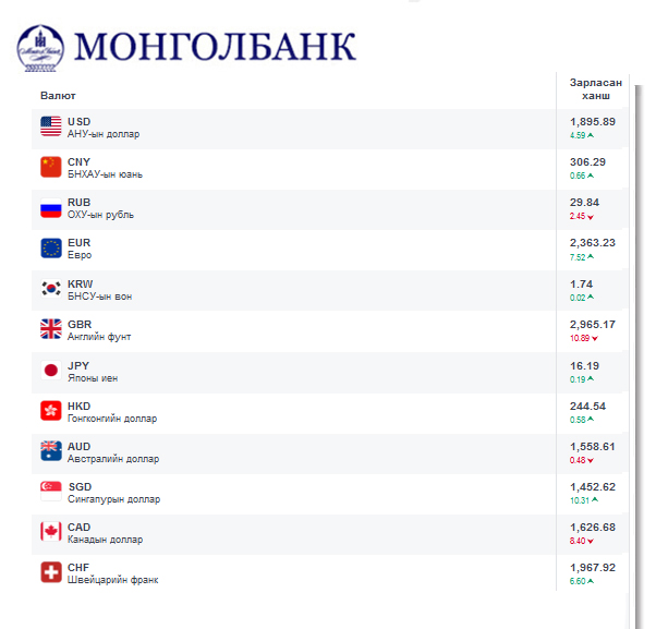 Өнөөдрийн байдлаар валютын ханш Монголбанк, арилжааны банкууд болон валютын захууд дээр ямар байгааг хүргэе.