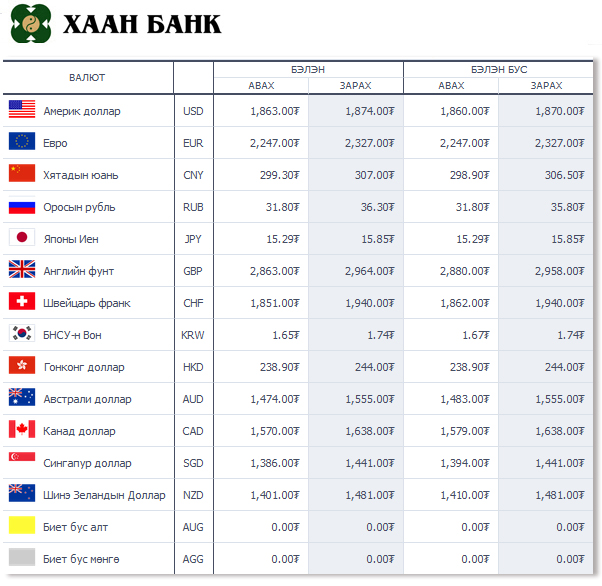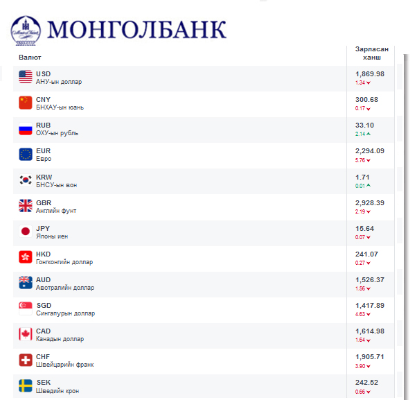 Өнөөдрийн байдлаар валютын ханш Монголбанк, арилжааны банкууд болон валютын захууд дээр ямар байгааг хүргэе.