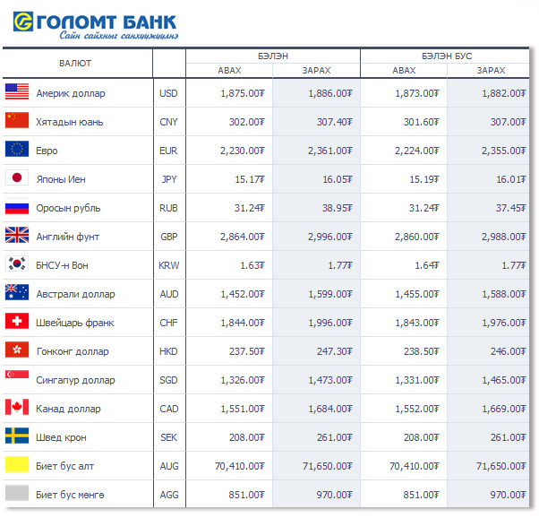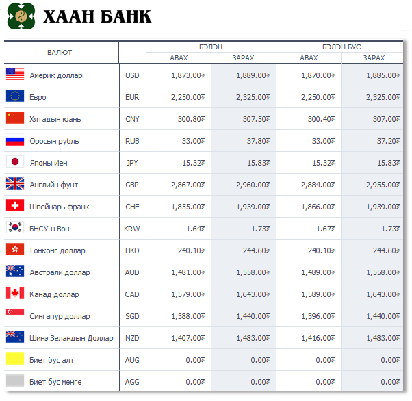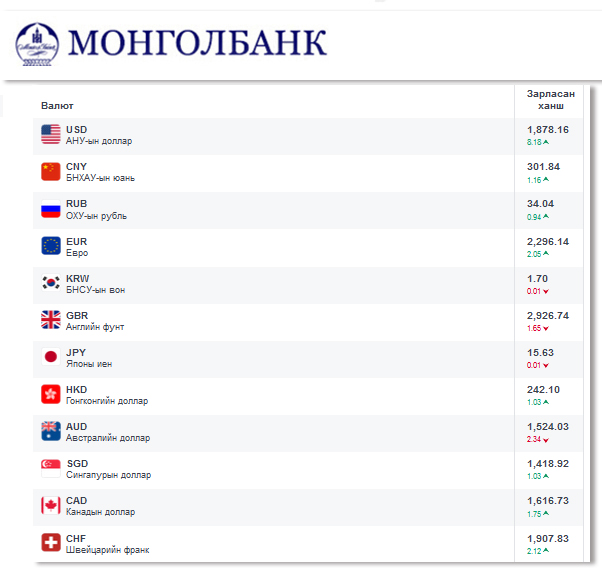 Өнөөдрийн байдлаар валютын ханш Монголбанк, арилжааны банкууд болон валютын захууд дээр ямар байгааг хүргэе.