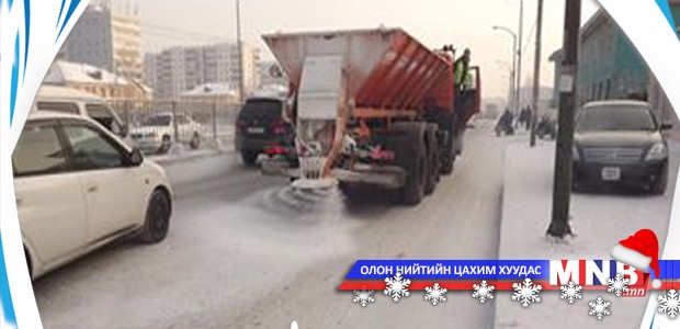 Өчигдөр Улаанбаатар хотод цас орж, авто замууд дээр халтиргаа үүссэн учраас цас хайлуулах бодис цацаж эхэлжээ. Тодруулбал, “Нийтийн үйлчилгээний Улаанбаатар нэгтгэл” ОНӨААТҮГ-аас өчигдөр өдрийн 17:00 цагаас эхлэн Автогрейдер, Камаз, Ковш зэрэг тусгай тоноглол бүхий 13 машинаар, өнөө өглөөний 04:00 цаг хүртэл даваа, гүвээ, гүүр, өгсүүр зам, уулзвар, шулуун зам гэсэн дөрвөн чиглэлээр маршрутын дагуу 85 тонн бодис цацжээ.