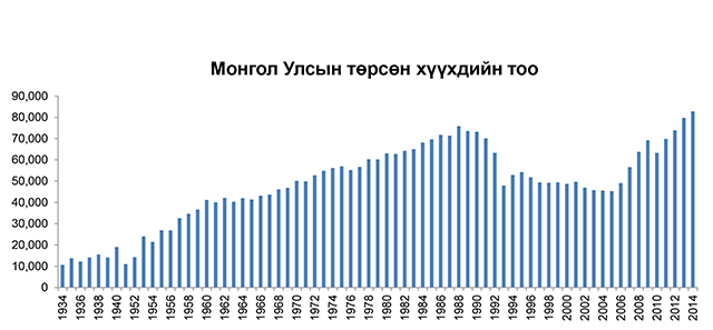 Монгол Улсын нутаг дэвсгэрт 2014 онд 81715 хүүхэд мэндэлсэн нь төрөлтийн түүхэн дэх хамгийн өндөр үзүүлэлт болж байжээ. Түүнчлэн манай улсын хоёр сая дахь иргэн төрж байсан үе буюу 1988 онд 75832 хүүхэд, 2013 онд 79780 хүүхэд төрсөн нь хамгийн өндөр үзүүлэлт хэмээн тэмдэглэгдсэн байна.