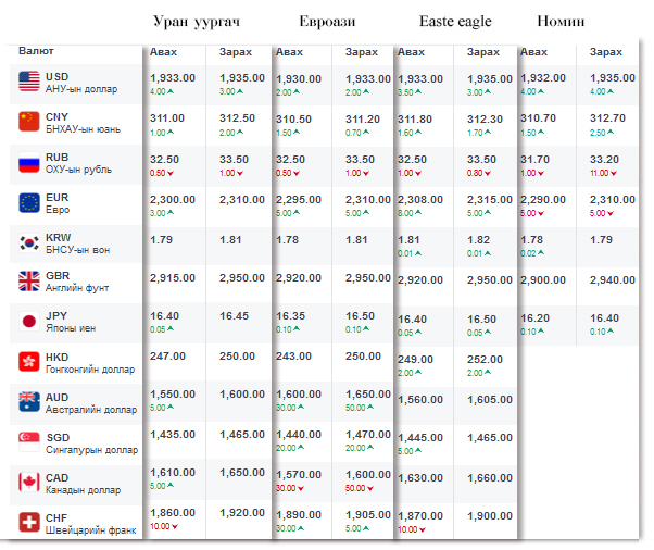 Өнөөдрийн байдлаар валютын ханш Монголбанк, арилжааны банкуудад ямар байгааг хүргэе.
