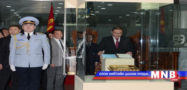 | Ардчилсан шинэ Үндсэн хуулийн уг эхийг Монгол төрийн түүхийн музейд заллаа | ||