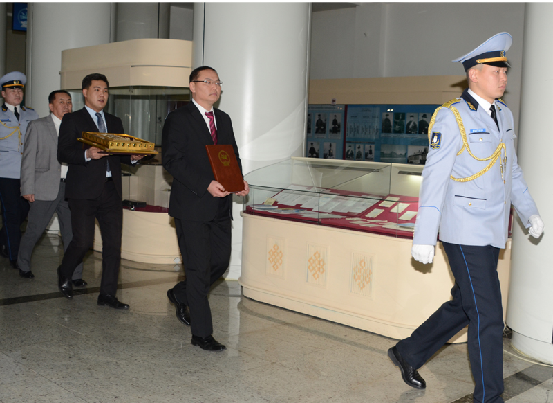 Ардчилсан шинэ Үндсэн хуулийн уг эхийг Монгол төрийн түүхийн музейд залах ёслолын арга хэмжээний үеэр Монголбанкны Эрдэнэсийн санд эх хувь нь хадгалагддаг Шашин төрийг хослон баригч Нарангэрэлт Богд хааны цагаан чулуун тамга, Шашин төрийг хослон баригч Нарангэрэлт Богд хааны мөнгөн тамга, Шашин төр хоёрыг хослон өрнүүлэгч Эх дагинын мөнгөн тамга, Богд Живзундамбын алтан тамга, Зарлигаар өргөмжилсөн шашныг мандуулагч, амьтныг жаргуулагч Живзундамба ламын алтан тамганы хуулбаруудыг Монголбанкнаас Төрийн түүхийн музейн сан хөмрөгт хадгалуулж олны хүртээл болгохоор хүлээлгэн өгсөн юм.