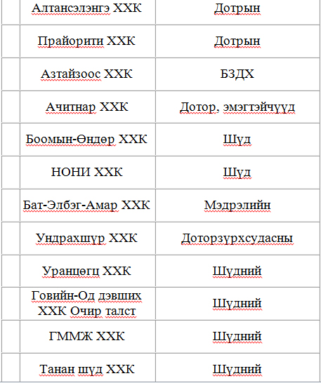 Эрүүл мэндийн байгууллагад мэргэжлийн үйл ажиллагаа явуулах тусгай зөвшөөрөл олгох Нийслэлийн комиссын даргын 2014 оны 12 дугаар сарын 22-ны өдрийн 06 дугаар тушаалаар дараах эмнэлгүүдийн тусгай зөвшөөрлийг цуцласан байна.