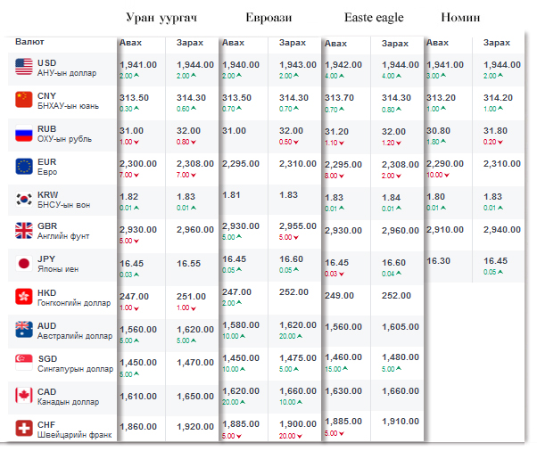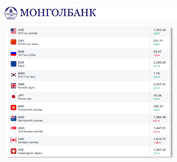 Өнөөдрийн байдлаар валютын ханш Монголбанк, арилжааны банкуудад ямар байгааг хүргэе.