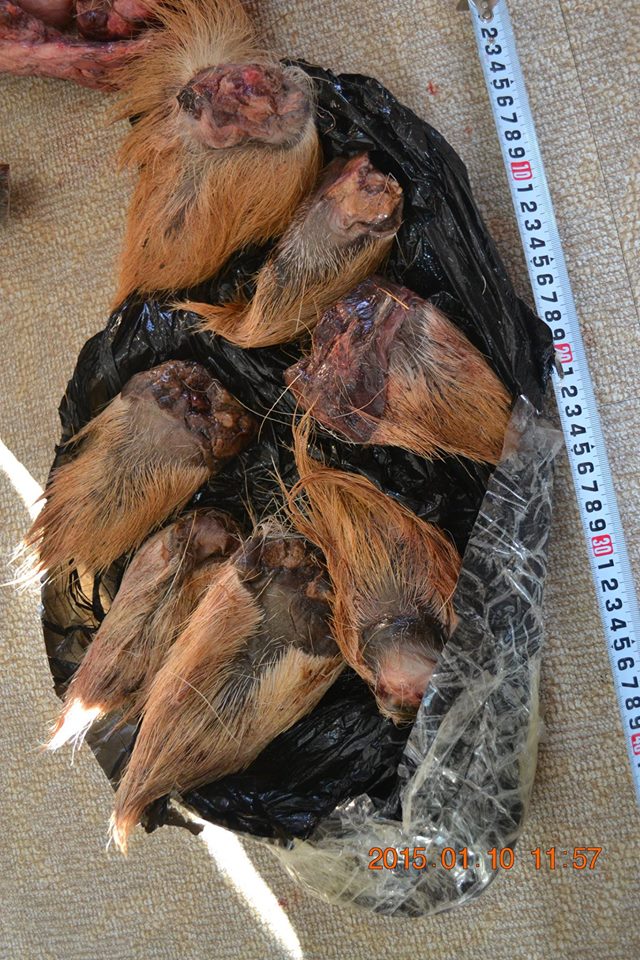 Хураагдсан эд зүйлээс үзэхэд баавгай хоёр, буга 13, согоо 17, хүдэр нэгийг тус тус хуль бусаар агнасан байна. Хохирлын хэмжээг шууд тогтоох боломжгүй учраас шинжээч томилон экологи, эдийн засгийн үнэлгээг тогтоолгохоор ажиллаж байгаа ажээ. Үүнтэй холбогдуулан цагдаагийн байгууллагаас хууль бус ан хийж, улсын хилээр ан амьтны гаралтай түүхий эд нэвтрүүлэхийг завдахгүй байхыг анхааруулсан байна.