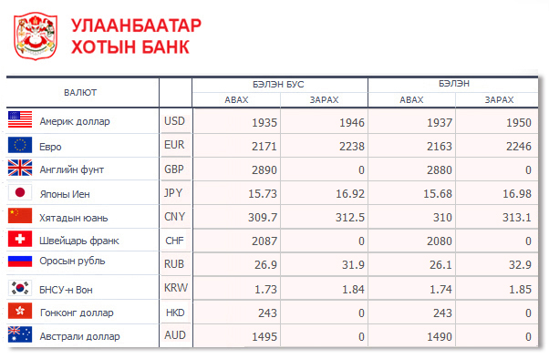 | Өнөөдрийн валютын ханш /2015.01.30/ | ||