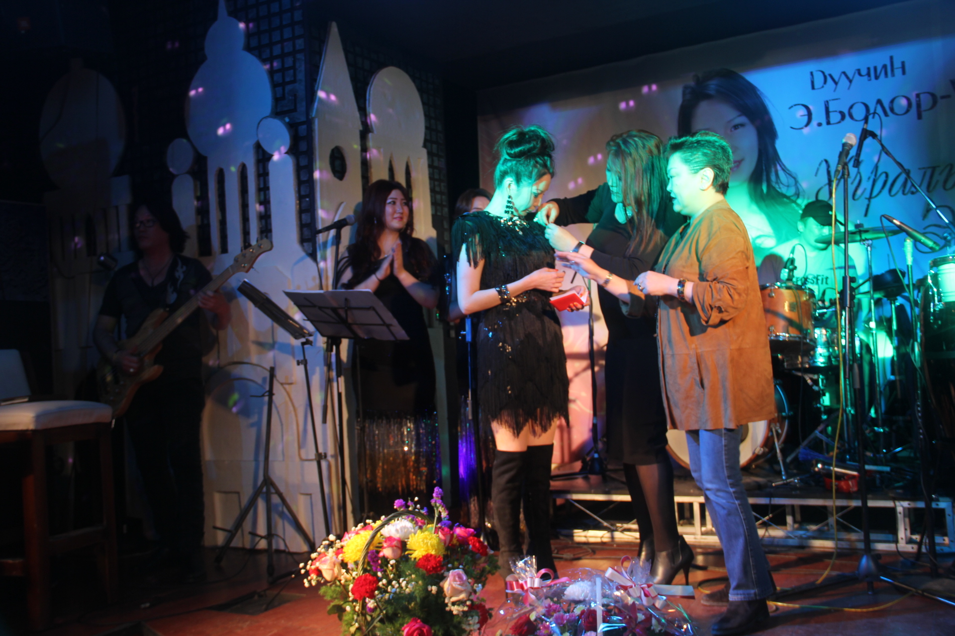 Ард түмэн аяыг нь сонсоод л дагаж дуулдаг энэ гайхалтай уран бүтээлийг 27 жилийн дараа дахин дуулж, сонсогчдын сонорыг мялаасан дуучин бүсгүйг “Соёлын тэргүүний ажилтан” цол тэмдгээр шагнах тэр мөчид үзэгчдийн алга ташилт, хашгираан клубын гаднаас ч сонсогдохоор байсан юм. Түүний шагналыг хөгжмийн зохиолч, продюсер Б.Ангирмаа гардуулсан бөгөөд тэрбээр “Эмэгтэй уран бүтээлчдийн төлөөлөлд багтан, олон сайхан уран бүтээлээ ард түмэндээ сонсгож яваа залуу уран бүтээлч дүүдээ баяр хүргэе. Өнөөдөр үнэхээр гайхалтай үдэш байна. Хөгжимчид, дуучдаа хараад сэтгэл хөдлөөд сууж чадахгүй, босч бүжиглэлээ. Чадалтай хоолойтой, зорилго тэмүүлэлтэй дүүд маань өгсөн энэ шагнал нүдээ олжээ гэж бодож суулаа. Дүүдээ уран бүтээлийн өндөр амжилт хүсье” гэв.