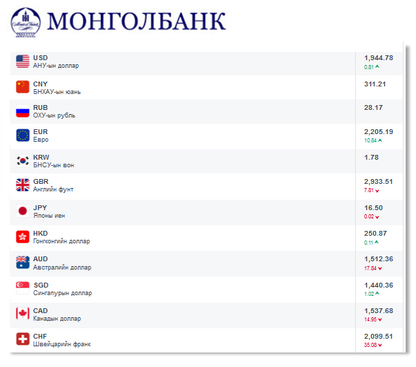 Өнөөдрийн байдлаар валютын ханш Монголбанк, арилжааны банкуудад ямар байгааг хүргэе...