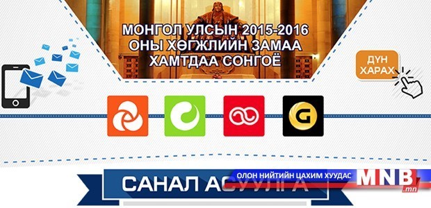 Засгийн газраас нийт иргэдийнхээ дунд “2015-2016 онд хөгжлийн замаа хамтдаа сонгоё” санал асуулгыг явуулсан билээ. Ингэхдээ нэгдүгээр сарын 31-ний 10:00 цагаас хоёрдугаар сарын гуравны 22:00 цагийн хооронд үүрэн холбооны бүх операторуудтай хамтран иргэдээс мессежээр саналыг нь авсан юм. Харин өнөөдөр тус санал асуулгын дүн гарсан байна.