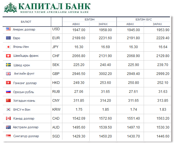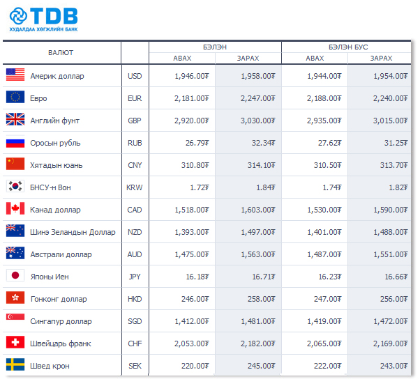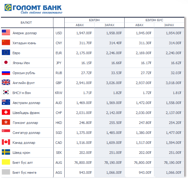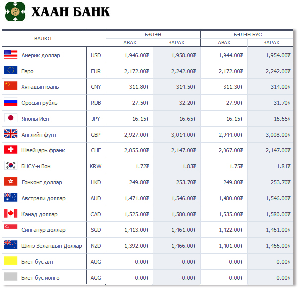 Өнөөдрийн байдлаар валютын ханш Монголбанк, арилжааны банкуудад ямар байгааг хүргэе.