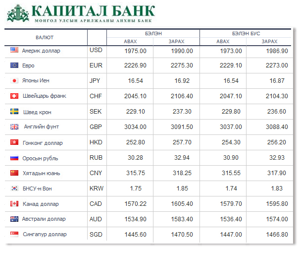Өнөөдрийн байдлаар валютын ханш Монголбанк, арилжааны банкуудад ямар байгааг хүргэе.