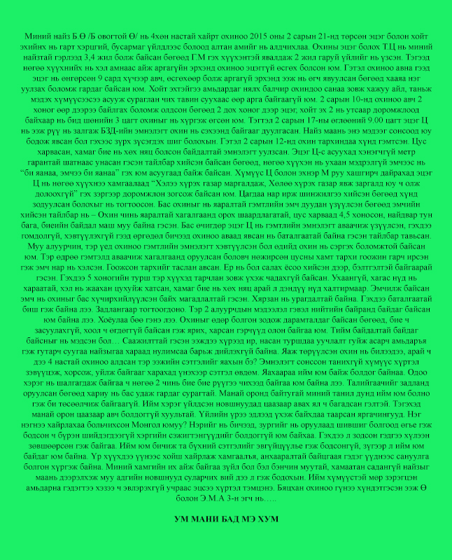 АНХААРУУЛГА: Уншигчдын бичсэн сэтгэгдэлд MNB.mn хариуцлага хүлээхгүй болно. ТА сэтгэгдэл бичихдээ хууль зүйн болон ёс суртахууны хэм хэмжээг хүндэтгэнэ үү. Хэм хэмжээг зөрчсөн сэтгэгдэлийг админ устгах эрхтэй. Сэтгэгдэлтэй холбоотой санал гомдолыг 70127055 утсаар хүлээн авна.