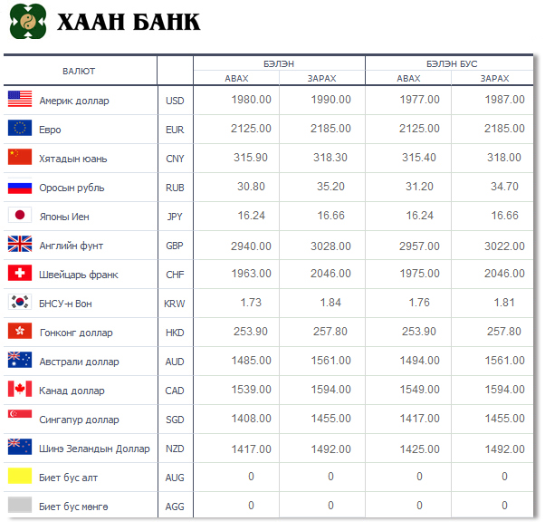 | Өнөөдрийн валютын ханш /2015.03.10/ | ||