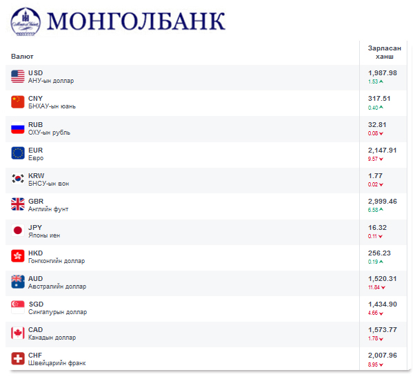 Өнөөдрийн байдлаар валютын ханш Монголбанк, арилжааны банкуудад ямар байгааг хүргэе...