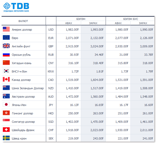 | Өнөөдрийн валютын ханш /2015.03.12/ | ||