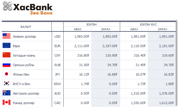 | Өнөөдрийн валютын ханш /2015.03.19/ | ||