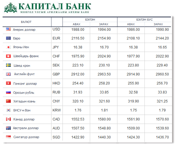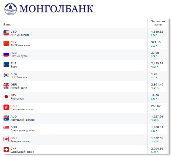 Өнөөдрийн байдлаар валютын ханш Монголбанк, арилжааны банкуудад ямар байгааг хүргэе.