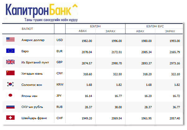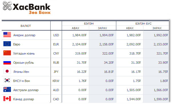 | Өнөөдрийн валютын ханш /2015.03.20/ | ||