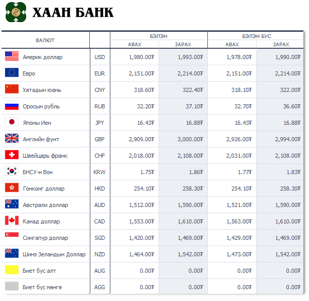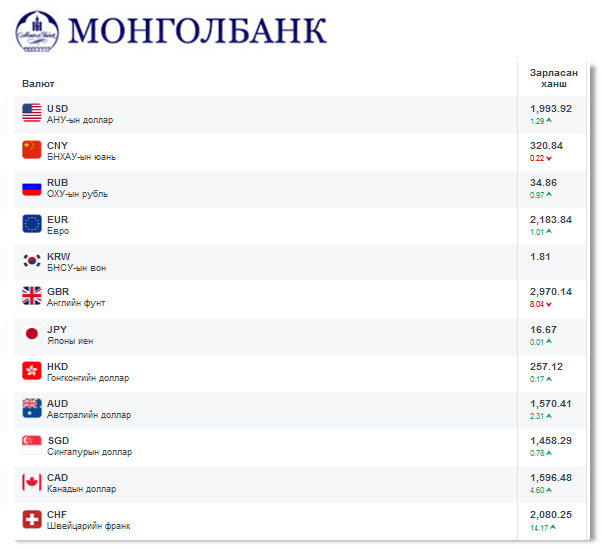 Өнөөдрийн байдлаар валютын ханш Монголбанк, арилжааны банкуудад ямар байгааг хүргэе.
