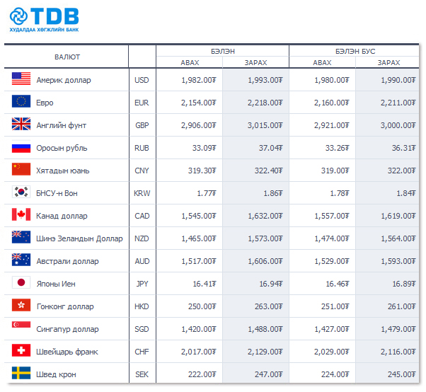 | Өнөөдрийн валютын ханш /2015.03.26/ | ||