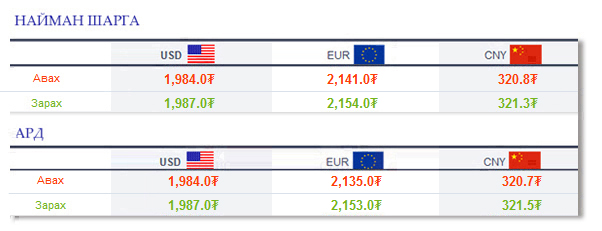 Өнөөдрийн байдлаар валютын ханш Монголбанк, арилжааны банкуудад ямар байгааг хүргэе.